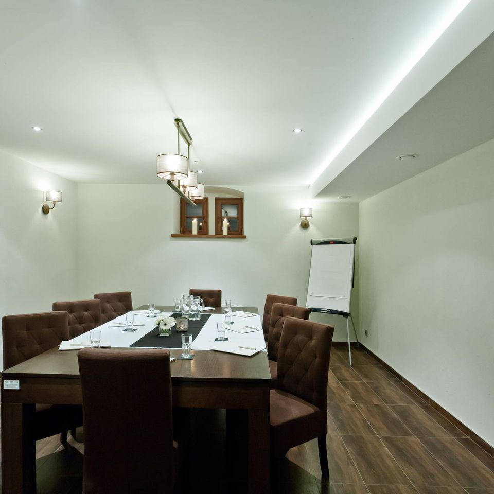 Sala klubowa ze stołem bilardowo-konferencyjnym dla 10 osób doskonale sprawdzi się w przypadku kameralnych spotkań biznesowych dostosowanych do indywidualnych potrzeb naszych Gości. Sala zapewnia dostęp do światła dziennego oraz krzesła konferencyjne z możliwością montażu pulpitu.