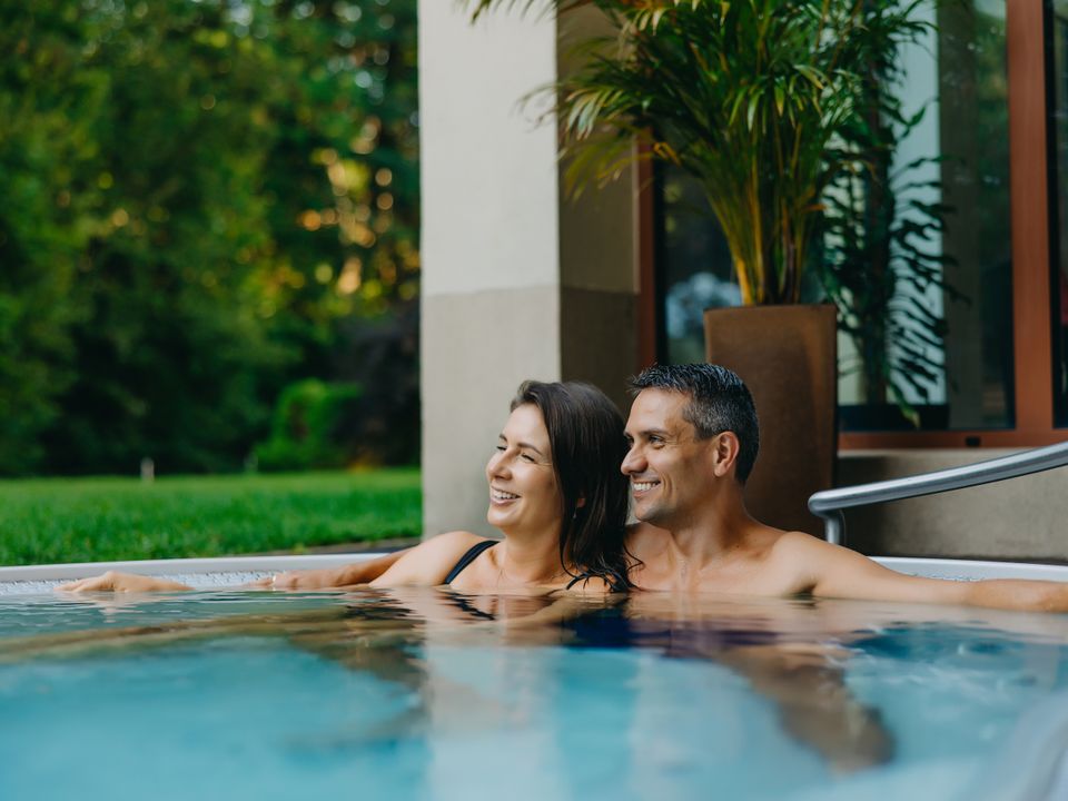 Dzięki chwilom spędzonym w zewnętrznym jacuzzi możliwe staje się odzyskanie wewnętrznej równowagi i poczucia zespolenia z naturą.