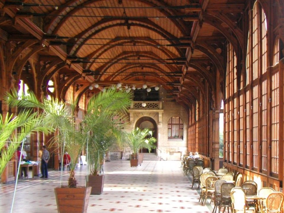 Najdłuższa w Sudetach kryta Hala Spacerowa o długości 80 metrów wykonana z drzewa modrzewiowego. Jej wnętrze zdobione jest roślinną polichromią, witrażami, a na wprost wejścia do hali, nad sceną znajduje się herb Schaffgotschów.