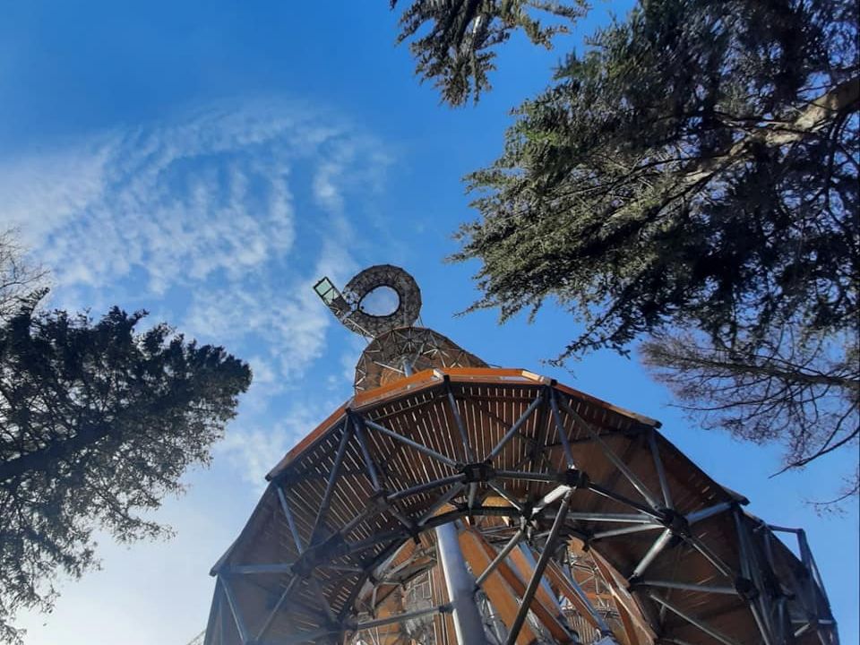 Wieża widokowa ze ścieżką w chmurach, wkomponowana w las na zboczu góry Świeradowiec (1037 m n.p.m.), ma 60 m. wys., górny taras widokowy znajduje się na wys. około 55 m. Spacer przy samej wieży ma długość 800 m, zaś cała ścieżka dydaktyczna wiodąc również przez las będzie się wić przez około 3 km.